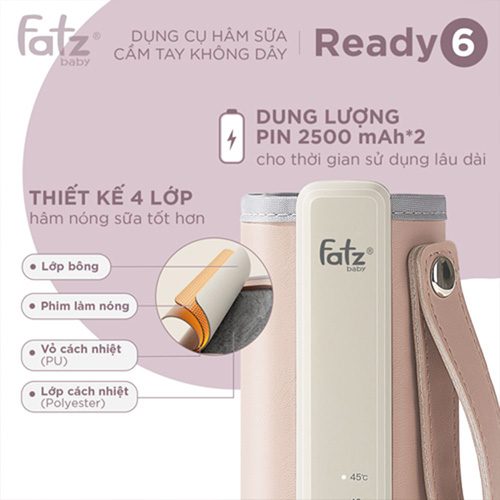 Fatzbaby Ready 6 FB3068BT là giải pháp hâm sữa tiện lợi cho mẹ khi di chuyển. Với thiết kế nhỏ gọn, không dây, dễ sạc và dễ mang theo, sản phẩm giúp giữ ấm sữa ổn định chỉ với một nút bấm.